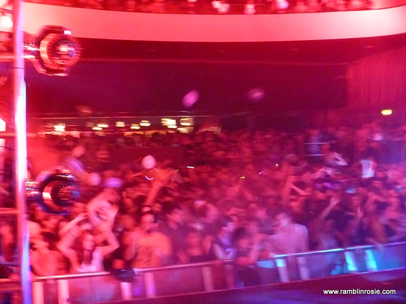 The gig was amazing: ridiculous line-up, great vibe, great crowd, nice bands, good peeps. Also: a balloon drop! They had LED lights on them! And LED hula hoop girls! It was definitely the coolest thing I got to do during my time in London.