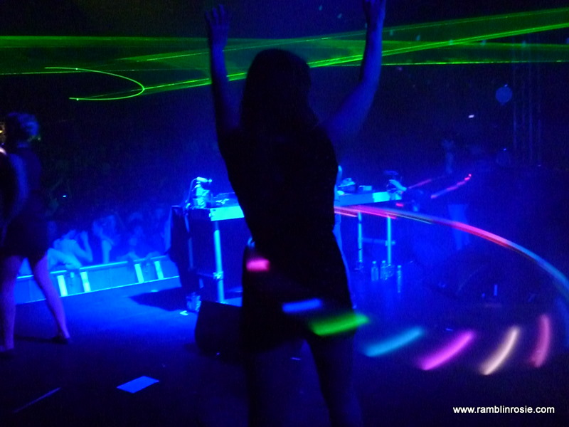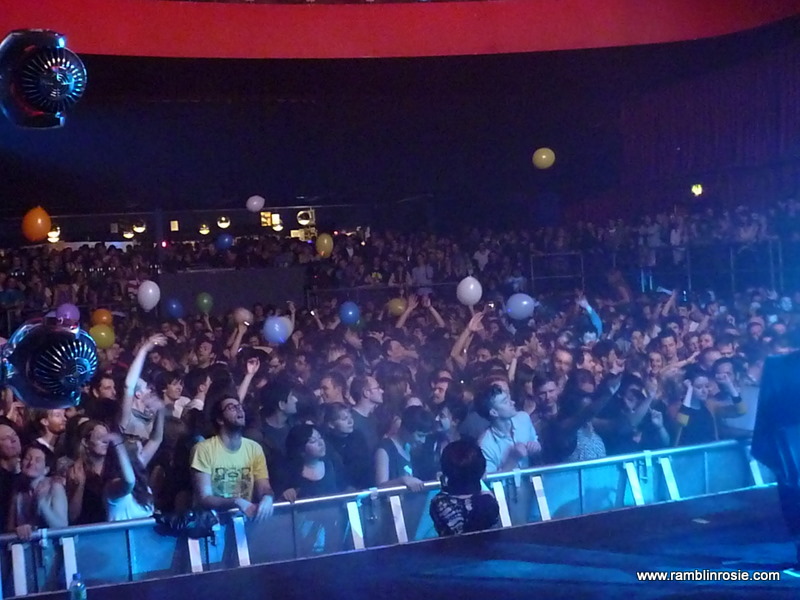 The gig was amazing: ridiculous line-up, great vibe, great crowd, nice bands, good peeps. Also: a balloon drop! They had LED lights on them! And LED hula hoop girls! It was definitely the coolest thing I got to do during my time in London.